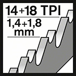 Шаг зубьев [мм]/TPI 1,4+1,8 / 14+18