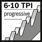 Шаг зубьев [мм]/TPI 2,5-4,3 / 6-10