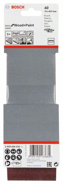 Набор из 3 шлифлент X440 75 x 457 мм, 40