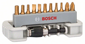 Набор бит для шуруповерта 11 шт., вкл. держатель для бит PH2; PZ2; T10; T15; T20; T25; S0,6x4,5; S0,8x5,5; HEX3; HEX4; HEX5; 25 мм