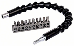 11 гибких пластиковых удлинителей SDB Гибкий пластиковый удлинитель, 300 мм, набор насадок-бит, PH1, PH2, PH3, PZ2, Hex4, Hex5, T20, T25, SL 0,6x4,5; SL 0,8x5,5