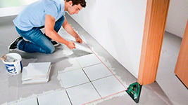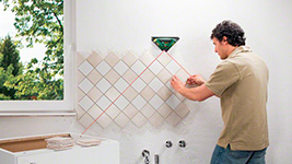 2 лазерных луча под углом 90° обеспечивают точное выравнивание при укладке плитки и ламината