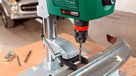 Быстрозажимное устройство надежно фиксирует даже круглые материалы, обеспечивая точность сверления