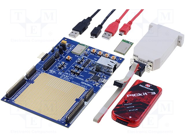 Состав набора базовая плата, кабель USB, модуль WF121, программатор USB