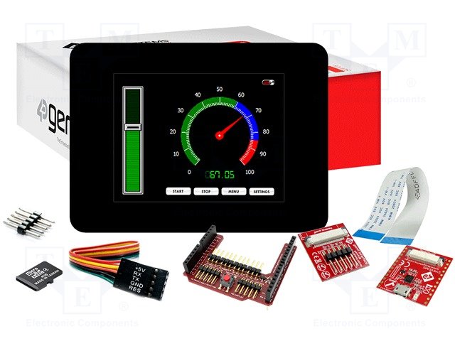 Состав набора GEN4-IB, GEN4-PA, адаптер Arduino Shield II, кабель FFC 15см 30pin, карта памяти microSD 4ГБ, ленточный кабель с адаптером 5pin