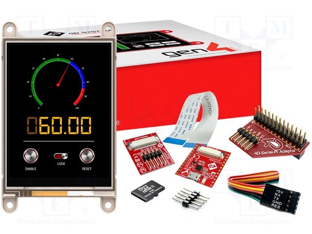 Состав набора GEN4-IB, адаптер 4D Serial PI, кабель FFC 15см 30pin, карта памяти microSD 4ГБ
