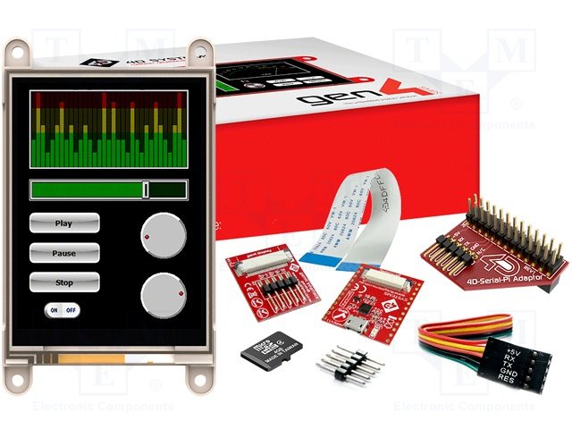 Состав набора GEN4-IB, адаптер 4D Serial PI, кабель FFC 15см 30pin, карта памяти microSD 4ГБ