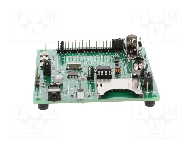 Характерные особенности средств разработки и программаторов гнездо для карт MMC/SD, гнездо наушников / line-in, область для макетирования, отсек для батарей AA, электретный микрофон