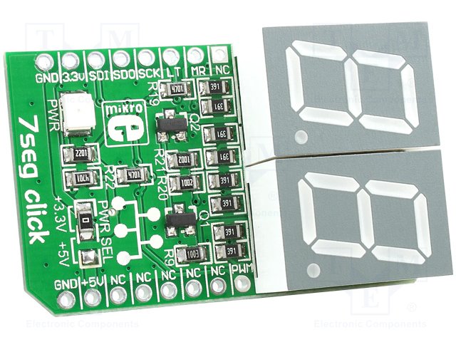 Click board; LCD-дисплей; SPI; 74HC595; mikroBUS вилка; 3,3/5ВDC