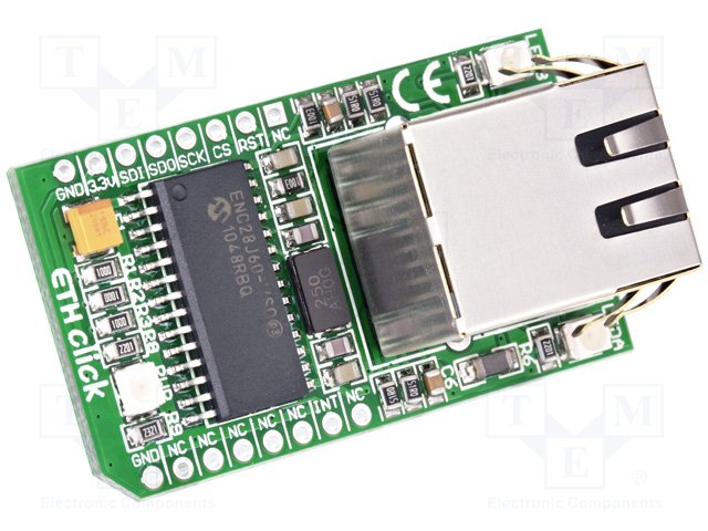 Click board; контроллер Еthernet; SPI; ENC28J60; mikroBUS вилка