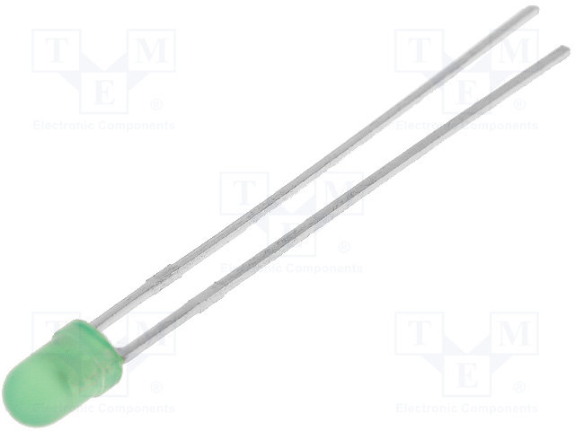 LED; 3мм; зеленый; 15мкд; 40°; Поверхность: выпуклая