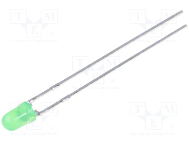 LED; 3мм; зеленый; 40÷60мкд; 50°; Поверхность: выпуклая