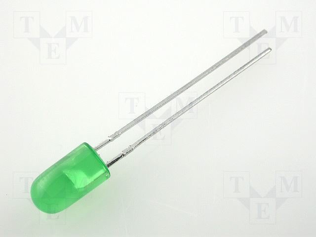 LED; 5мм; зеленый; 5÷20мкд; 60°; Поверхность: выпуклая; без бортика