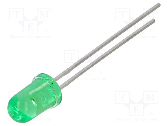LED; 5мм; зеленый; 19÷60мкд; 40°; Поверхность: выпуклая; Шаг: 2,54мм