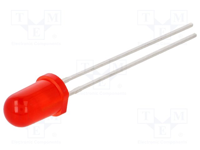 LED; 5мм; красный; 90÷200мкд; 50°; Поверхность: выпуклая