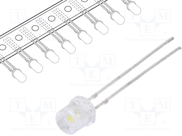 LED; 5мм; белый; 500÷1120мкд; 140°; Поверхность: плоская; 2000шт.