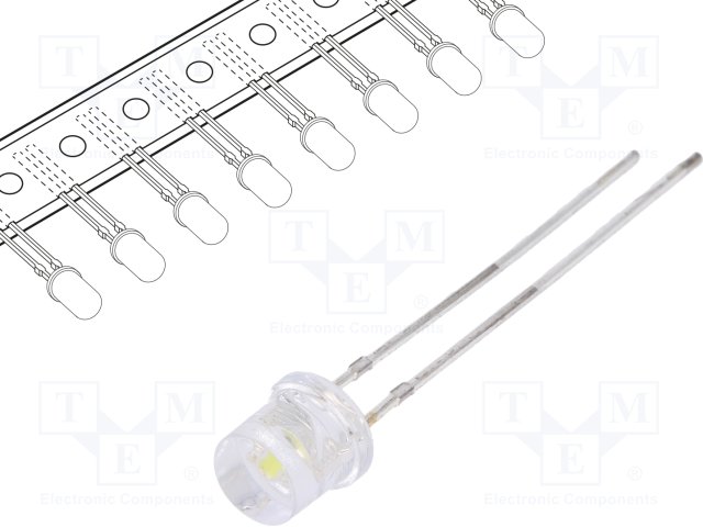 LED; 5мм; белый; 1560÷3000мкд; 140°; Поверхность: плоская; 2000шт.