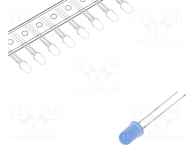 LED; 5мм; голубой; 330мкд; 40°; Поверхность: выпуклая; Шаг: 2,54мм