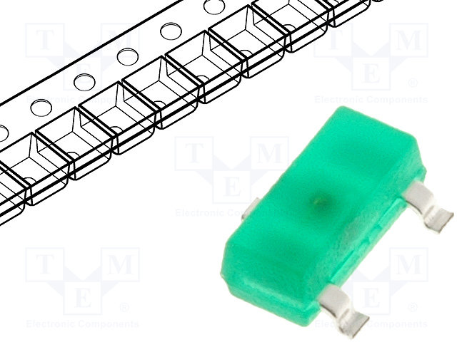 LED; SMD; SOT23; зеленый; 0,4мкд; 3x1,3x1,05мм; 140°; 2,2÷2,5В; 2мА