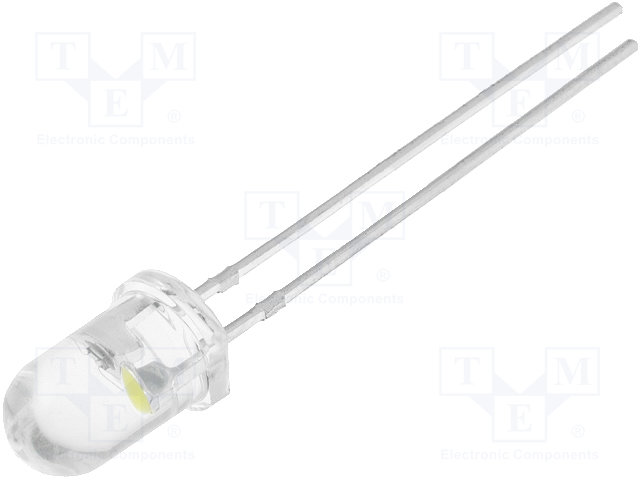 LED; 5мм; белый холодный; 3000мкд; 30°; 3,5÷4,8В; 20мА; Шаг: 2,54мм