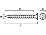 Шуруп изготовлен из закаленной стали с фосфатным покрытием или оцинкованный до блеска. Шуруп имеет головку Phillips с крестообразным шлицем Ph2.