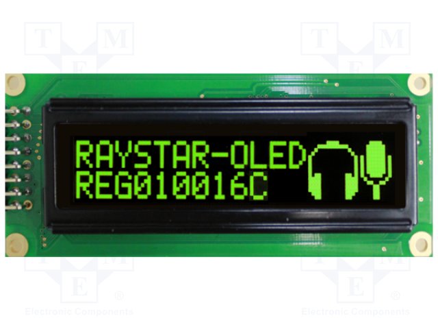 Дисплей: OLED; графический; 100x16; Размер окна: 66x16мм; зеленый