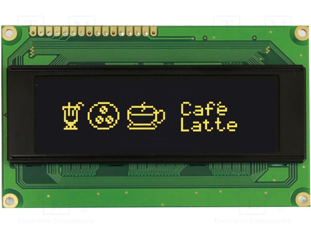 Дисплей: OLED; графический; 100x32; Размер окна: 77x25,2мм; желтый