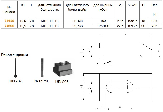 Вильчатый прихват, скошенный (AMF) DIN 6315B