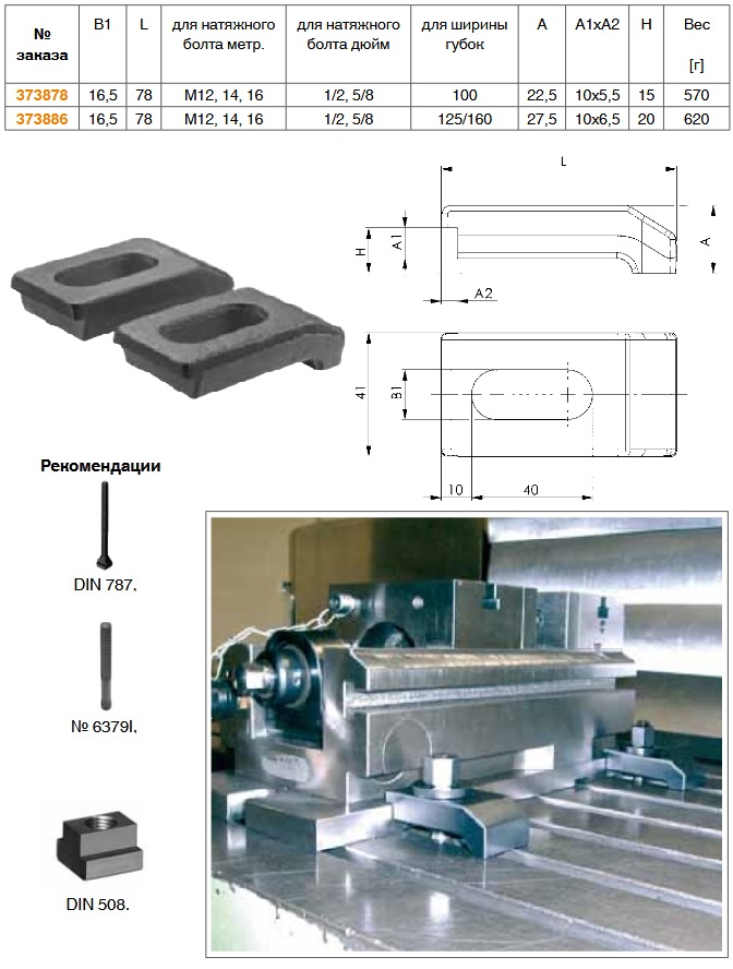 Ступенчатый прихват, с регулируемым опорным винтом (AMF) 6314AV