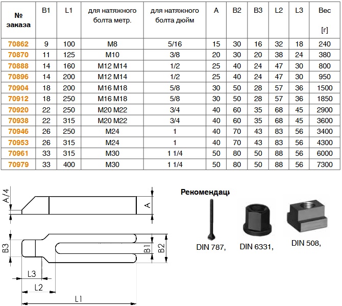 Вильчатый прихват, скошенный (AMF) DIN 6315B