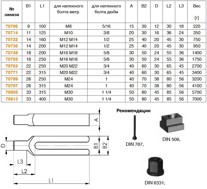 Вильчатый прихват, скошенный (AMF) DIN 6315B