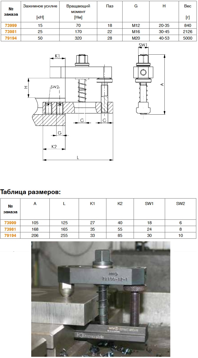 Применяется для зажима за исключением стола с инструментом. используется при зажиме больших заготовок или инструментов, при использовании которых нет места для зажимных элементов на столе для инструментов или на столе станка.