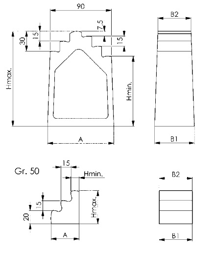 Ступенчатые опоры, широкие со ступенями зажима с разницей высоты 7,5 мм. Машинное литье, окрашенные. Опорная поверхность и ступени плоско отфрезерованы.