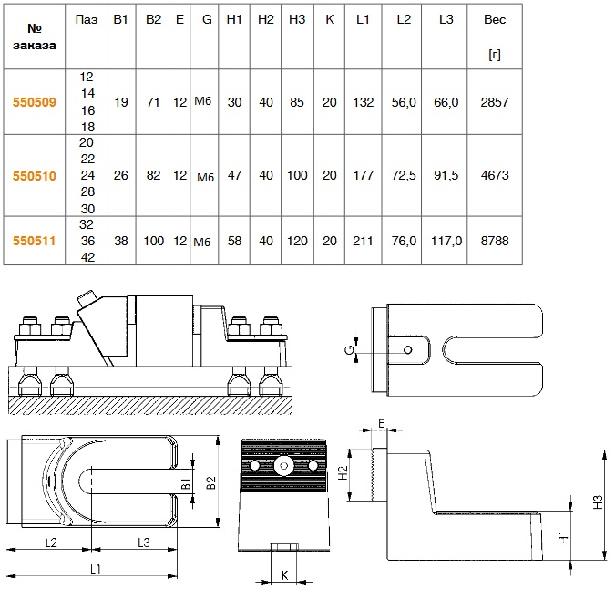 Указание:за счет использования плоской установочной шпонки No6322а или 6322в можно точно позиционировать упор в пазу стола станка.