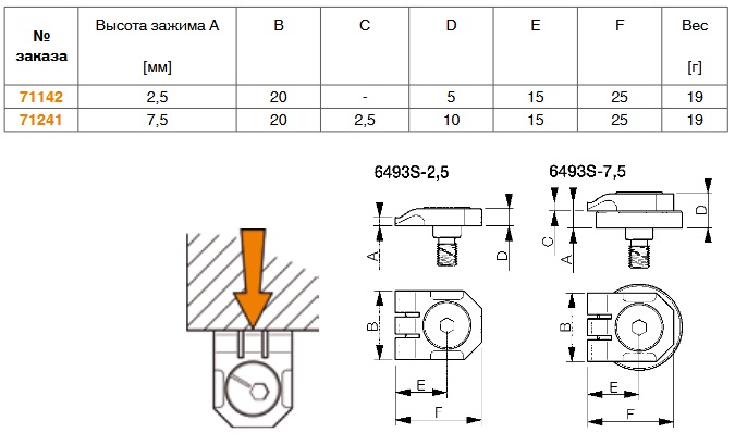 Механический зажимной элемент с эффектом прижима вниз, эксцентричный (AMF) 6489