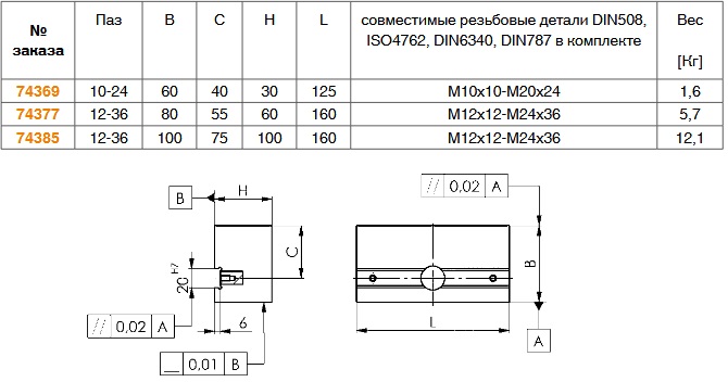 для T-образных пазов DIN 787, шестигранных гаек DIN 6330B и шайб DIN