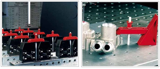 Применение:подходит для использования в трехмерных координатно-измерительных машинах, гравировальных и электроискровых станках, а также во всех случаях, когда нужны лишь небольшие зажимающие и удерживающие усилия. возможное зажимное усилие (около 5000 н) в зависимости от выбранного отношение плеч рычага опоры прихвата, достигается путем затяжки гайки на накатке. при заклинивании зажимных элементов гайку можно ослабить с помощью гаечного ключа с открытым зевом.