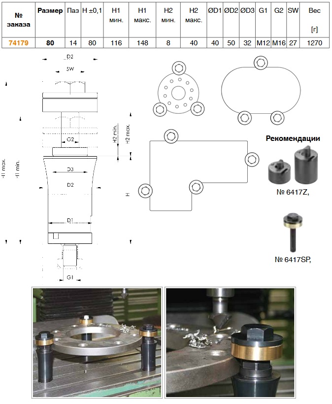 - опорная высота 80 мм - дополнительно поставляется удлинительный винт для заготовок толщиной 40 - 72 мм и промежуточных элементов, 25 мм и 50 мм, для увеличения опорной поверхности