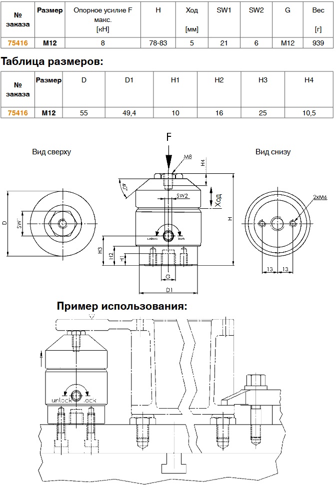 - для надежной работы резьбовое отверстие M 12 всегда должно быть закрыто